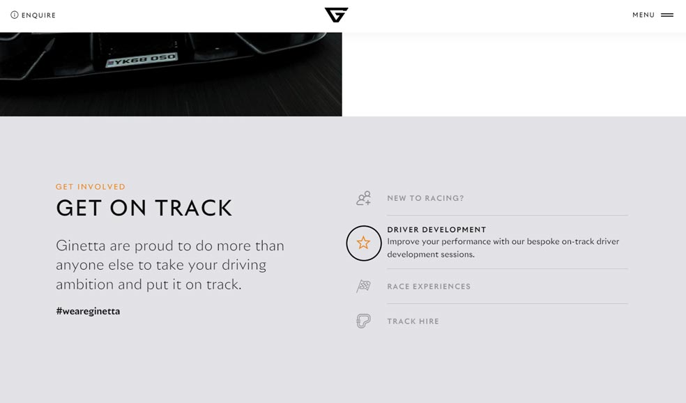The existing website was out of date, static and uninspiring. A new one was needed that better aligned with Ginetta’s ambitions, by positioning them as a pioneer in their field, showcasing their industry-leading products and promoting their activities on the motorsport calendar.