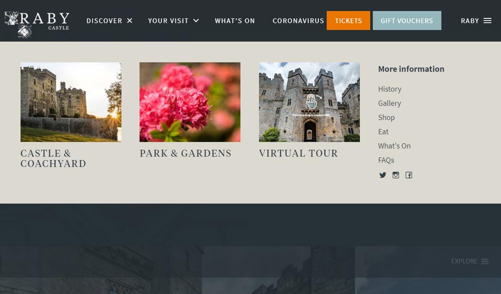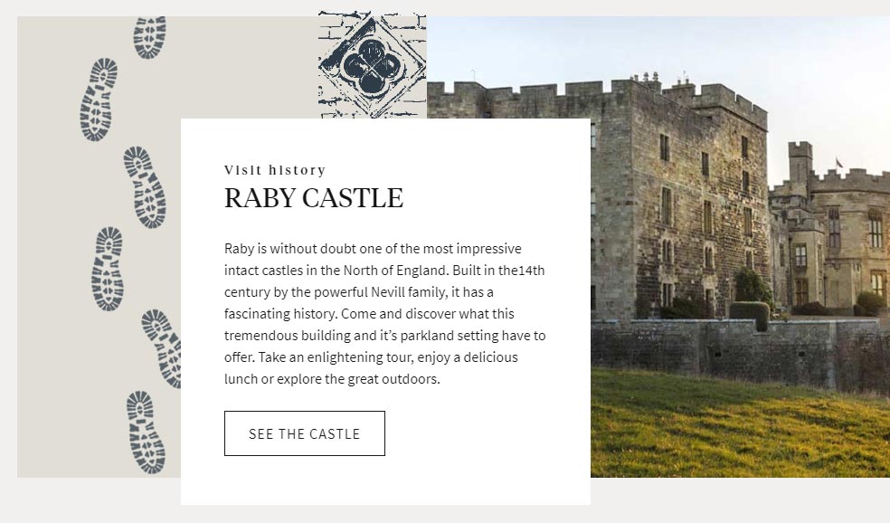 As well as prominent tourist attractions; agriculture, conservation and property are important areas for Raby. The wider estate and its activities, the castle and High Force all needed to stand-alone, yet connect and compliment each other. The posed many challenges with a potentially complex site structure and navigation system.