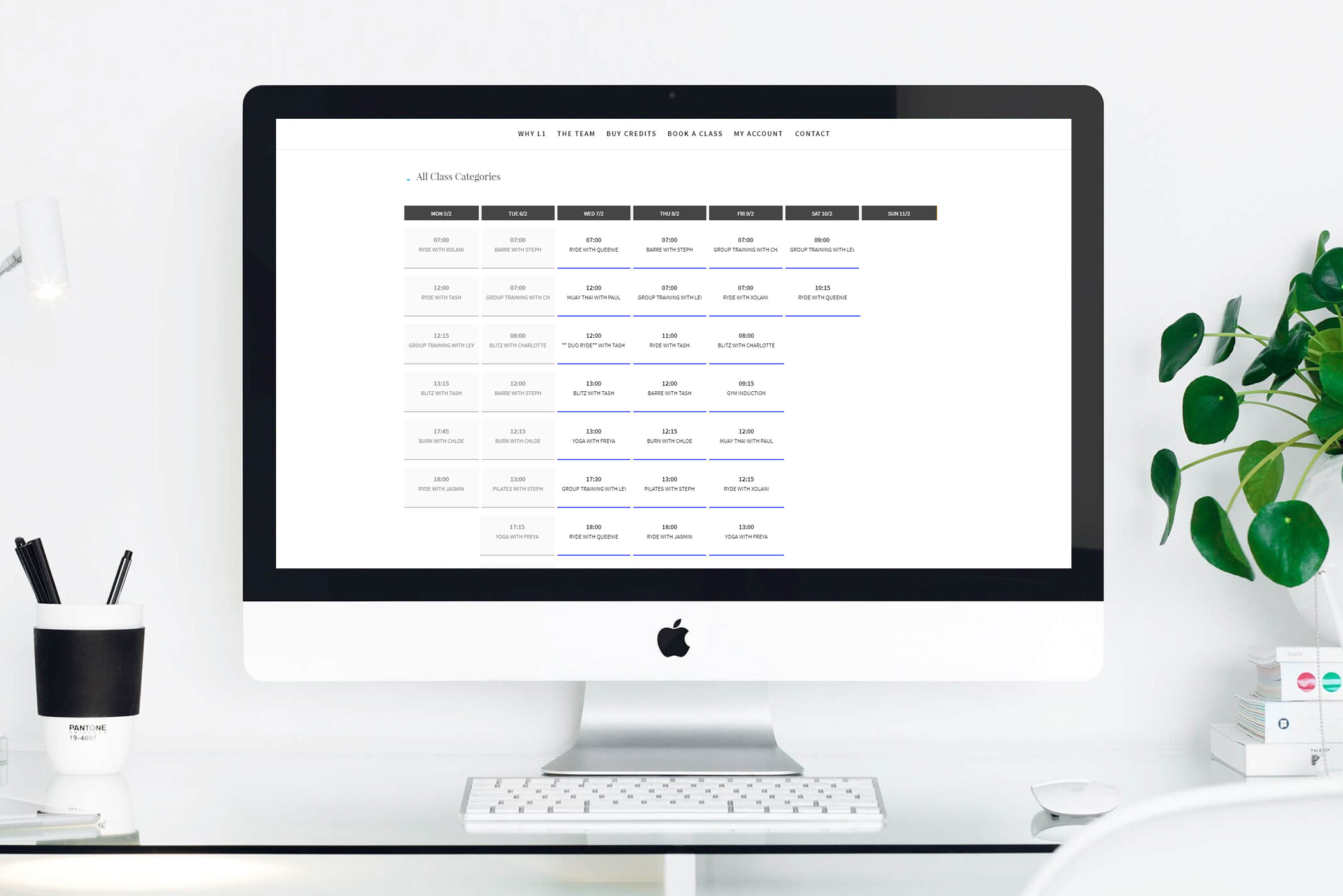 L1 provides a broader range of services than most gyms, so there was a need for a booking calendar to manage attendances for the numerous group and class events.